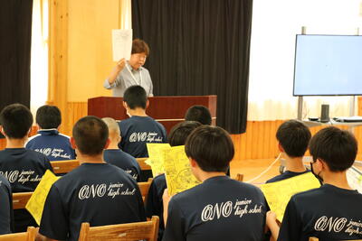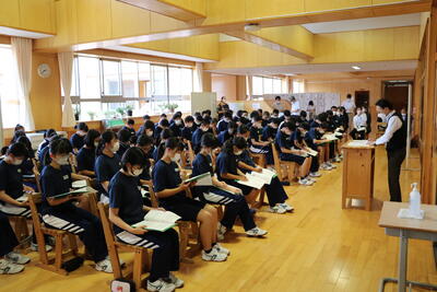 6月26日(月)6時間目に、3年生で、小野町中学生議会事前講話を実施しました。
