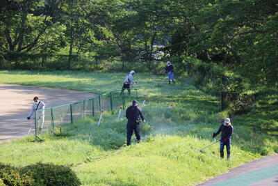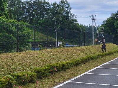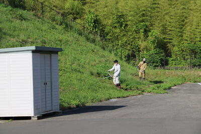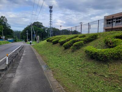 第2回奉仕作業の前日、早朝より地域の「小町会」の方のご厚意により、国道349号線沿いの法面の除草作業を行っていただきました。