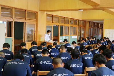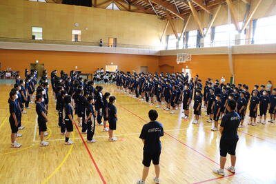 最後には、激励を込めて、吹奏楽部の演奏に合わせて校歌の全校合唱がありました。久しぶりの校歌も元気いっぱい体育館に響き渡りました。