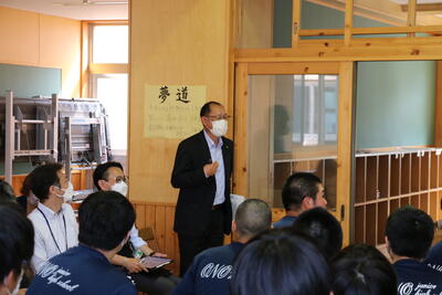 小野町公民館長さんからスケジュールやどのような体験をするのかなどの説明を受けました。