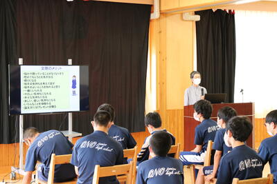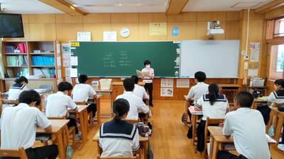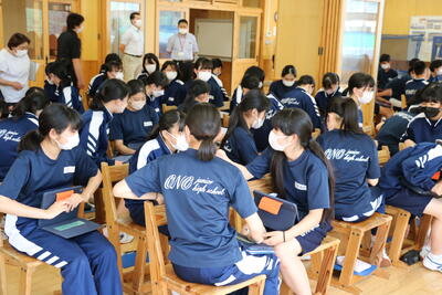 6月23日(月)6校時目に、町教育委員会が企画する「小野町小中学生国際体験事業」ブリティッシュ・ヒル宿泊研修の事前研修が行われました。