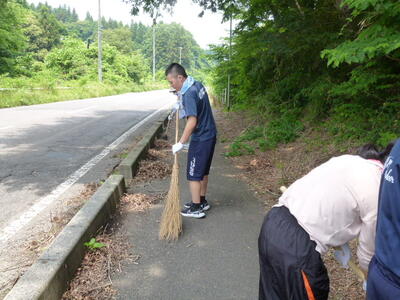 昨日、和久学級の生徒5人で、国道349号線沿いの歩道を覆っていた枯れ葉などを取り除くボランティア活動を行いました。