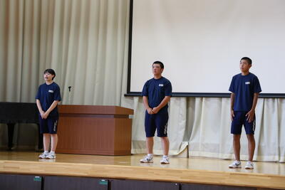 まずは、県大会に出場する3名より一人一人決意表明がありました。それぞれ「ベストを尽くして頑張ってきます!」と強い意気込みが伝わってきました。