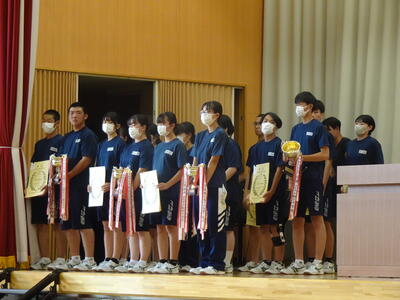 激励会終了後には、田村支部及び県中地区の中体連総合大会等の表彰も行われました。小野中生の大活躍により、たくさんの表彰がありました。