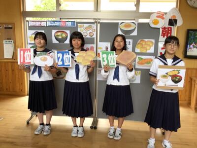 その際、保健委員会の生徒が「朝食のおとも」アンケートを行いました。
