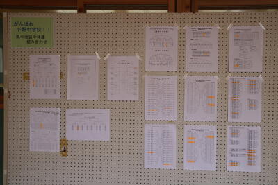 3学年フロアには、組合せ抽選会の直後から組合せ表が掲示されいました。