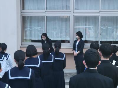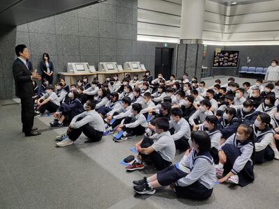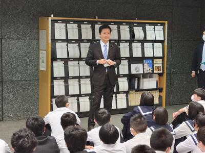 生徒たちに向けて「国会は、日本の社会全体のルールである『法律』を作るところ」、「幸せの秘訣は、ピンチをチャンスに『プラス発想』が大切」などお話をいただきました。生徒たちも真剣に聞いていました。