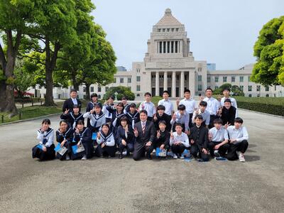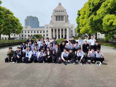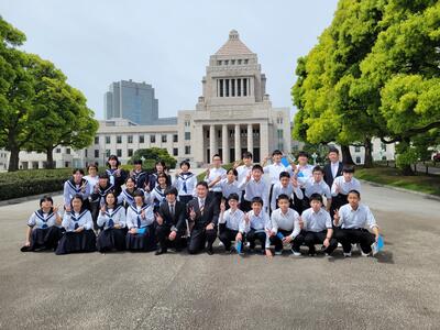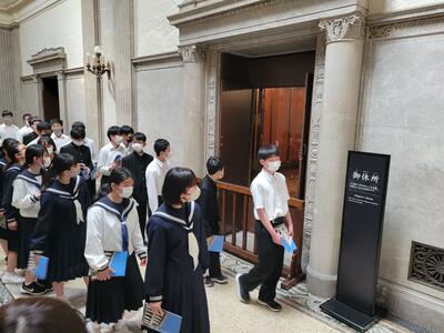 その後、国会議事堂内を見学しました。特に、テレビのニュースなどでよく見る衆議院議場に、生徒たちも興味津々でした。