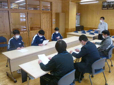 今日は靴下について生徒全員にアンケートを行った結果から、生徒会と学年主任の先生で意見交換をしました。これからも生徒会を中心に時代にそった校則への見直しを進めていきたいと思います。