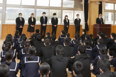 着任式では6名の先生がそれぞれ着任のあいさつをしました。