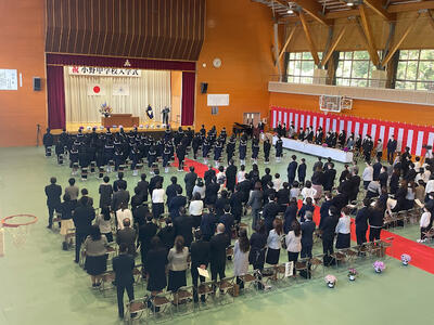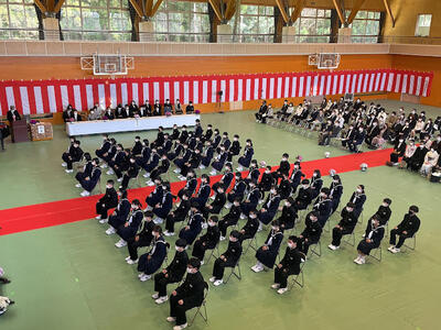4月6日の午後は入学式が行われました。真新しい制服で72名の新入生が担任の先生からの呼名に元気に返事をしていました。