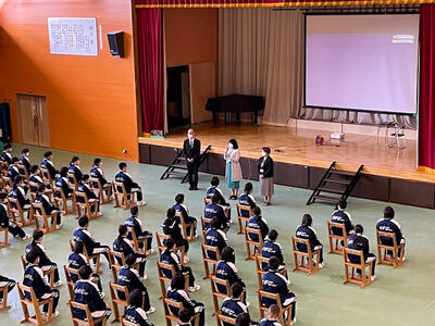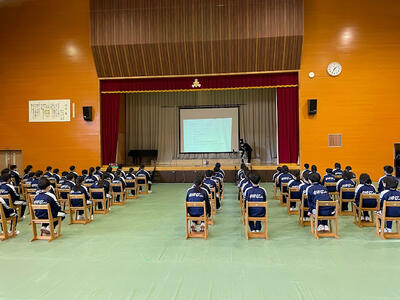 4月7日の午後は新入生歓迎会がありました。生徒会活動とは何か、各委員会の役割の説明、そしてメインは工夫を凝らした部活動の紹介。1年生は体育館にて、2,3年生は各教室でリモートで参加しました。歓迎会の前に新しくいらしたスクールカウンセラー、スクールソーシャルワーカーの先生の紹介も行いました。