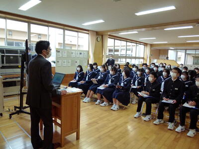 11月22日(月)に3学年を対象とした「租税教室」を実施しました。講師は田村市船引町の税理士、宗像住孝先生をお招きしました。消費税や所得税の税率の他にも、学校や勉強の必要性、未来の職業など幅の広い講話を楽しく聴かせてもらいました。