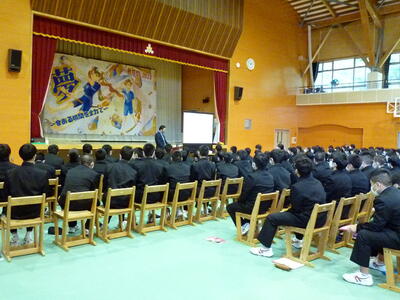 11月1日(月)から福島県の「学校に行こう週間」です。この日は生徒と保護者向けに、高校の先生に来ていただき高校説明会を行いました。3年生は6つの高校の話を聞いて目の前の入試に向けての進路選択のため、1,2年生は2つの高校(県立、私立)について話を聞いてこれからの進路の参考にしました。各高校の先生方にはお忙しい中お時間を頂き、小野中までお越し頂いて本当にありがとうございました。