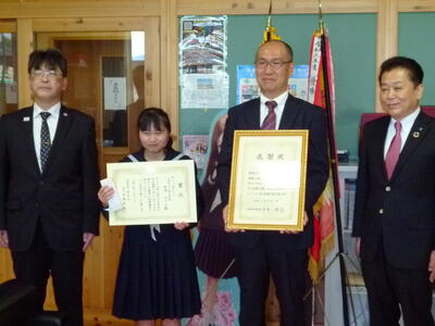 3年生が、夏休みに取り組んだ「税に関する作文」について、小野中学校に感謝状、3年女子生徒に郡山法人会長賞が授与されました。