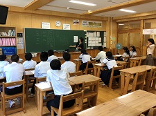 進学を控えた中学3年生に対して夏期講習を行うことにより、進路実現に向けた学力の向上を目指す、「平成30年度サマー・ショートプログラム」が本日8月1日(水)から10日(金)までの8日間の日程で始まりました。塾の講師2名とサポートティーチャー2名、町内出身の高校生と大学生が講師です。本校3年生60名が基礎と発展のクラスに分かれて、塾講師による一斉指導とサポートティーチャーと高校生・大学生による個別指導で、数学と英語の力を伸ばします。「夏を制する者は入試を制する」と言われています。夢への挑戦です。一日一日、1時間1時間に集中して頑張りましょう。