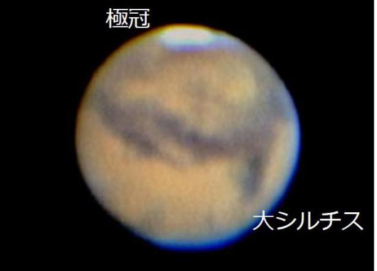 「火星の大接近」というと、その瞬間の日時ばかりが注目されがちです。しかし上の図のように、最接近前後の数週間は、地球と火星はほとんど同じ方向に並んで公転しているため、接近した状態が続きます。今回、火星は6月下旬から9月上旬頃までマイナス2等を超える明るさで輝いています。また、最接近の頃よりも遅い時期の方が、火星が昇ってくる時刻が早くなり、宵の空で観察しやすくなります。つまり、最接近のときだけでなく、2018年の夏から秋にかけての比較的長期間、視直径が大きくて明るく輝く火星を夜空で楽しむことができるのです。21時頃、南の空を眺めてみませんか。