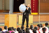 学級懇談会の間に子どもたちはは全校集会を行いました。はじめに校長先生からお話をいただきました。校長先生からは「冬にはどうして昼間が短くなるのか」や「冬に見える星座」などについてお話をいただきました。大きな地球儀を使って話していただき,子どもたちも大変興味深く聞いていました。