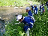 2015年5月21日 13時30分 本日5・6校時,5・6年生が夏井川清掃を行いました。夏井川清掃は,毎年夏井川友の会のみなさま・小野新町小学校5・6年生・小野中学生が合同で実施しています。初めに小野町商工会館前で開会式を行い,小野新町小学校5・6年生は小野中学生と班になって清掃を行いました。