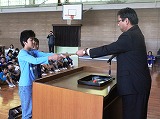 10月27日(火),お昼の上学年集会で「計算コンテスト表彰」を行いました。今年度は子どもたちが目標を持って,楽しく学習に取り組むために,全学年で「計算コンテスト」を行っています。今回は,全問正解者の中で,学年ごとに早く問題が解けた上位5名を表彰しました。