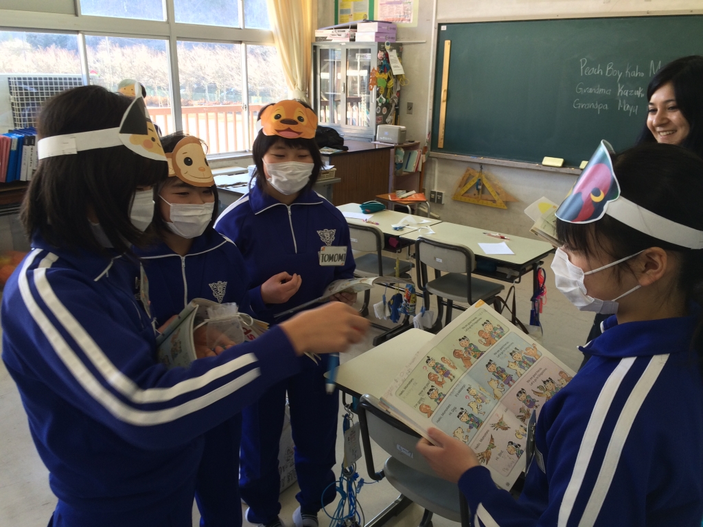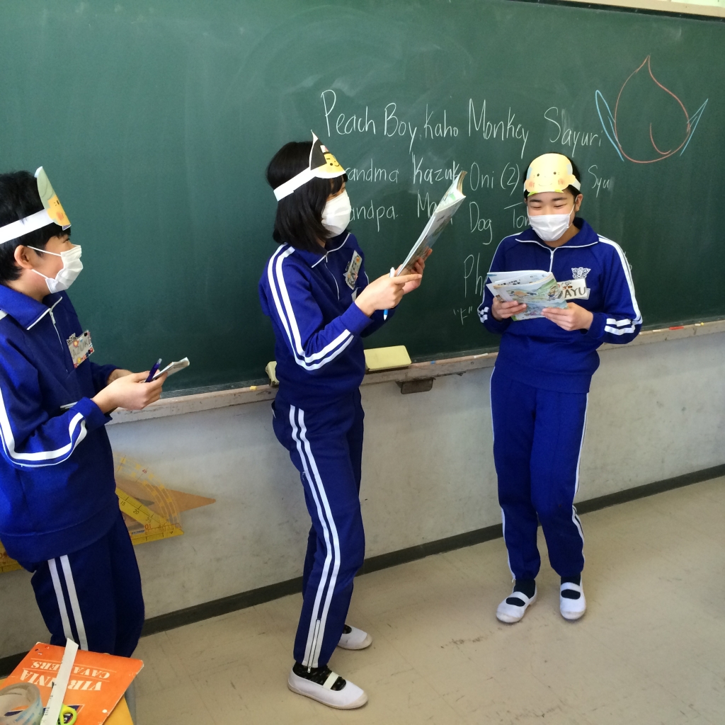 2016年2月19日 16時27分 6年生の外国語の授業で、「ももたろう」を英語劇で演じる学習を行いました。