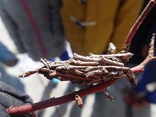 4年生が,冬越しの動植物の様子を観察していました。ルーペやデジカメを手に、みんなで協力しながら、季節の変化をしっかりとつかむことができたようです。オオミノガの巣や水の中で発見したヤゴなど,実物にふれながら「夏井の冬」について学習しました。