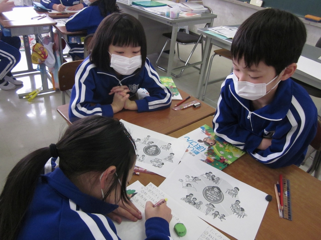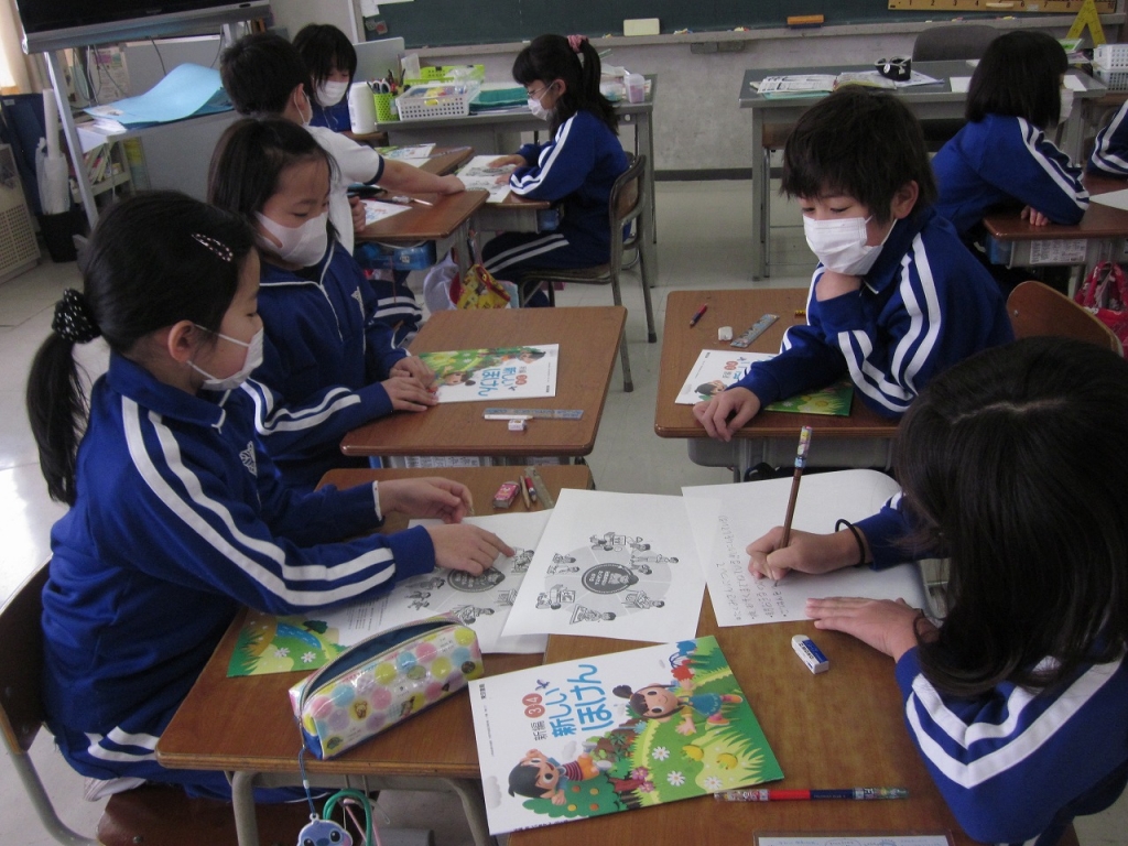 「元気のないたくみさん」と「元気なあやかさん」の生活を比べて、健康のために、どのような生活をすればよいか考えました。「あっ私の生活のようだ。」と自分の生活を振り返る姿もみられました。