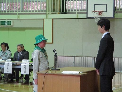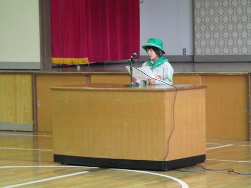 の活動方針を発表しました。校長先生からは、「ちかいの言葉にあるように、小野町の緑を未来に引き