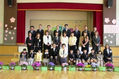 9名の新1年生は、とても立派な姿で式に参加することができました。これから、お勉強や運動、遊びなどを通して、心も身体も大きく成長してほしいと願っております。