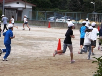 わくわくタイムの校庭は、BGMの『学園天国』(2分30秒)に合わせて走る