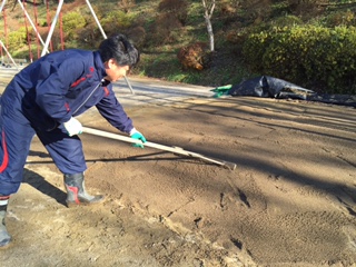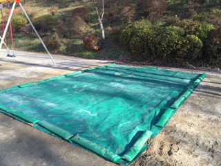 2015年12月18日 14時08分 10月の大風で砂場のブルーシートが破損したため、11月に新しい丈夫なカバーを設置しました。しかし、砂が減っていて、雨が降るたびにカバーに水がたまるため、今日、砂を補充していただきました。
