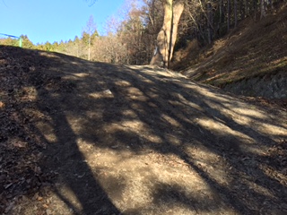 ミニクライム(低学年用砂場の南側)の大量の落ち葉を掃きました。