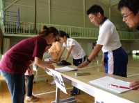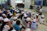 はじめに、全体で災害時の行動や災害時への備え等についての話を聞きました。