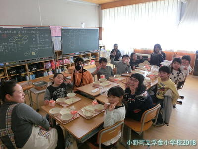 これはチャンスとばかりに,養護教諭と用務員が3・4年生と一緒に給食を食べました。